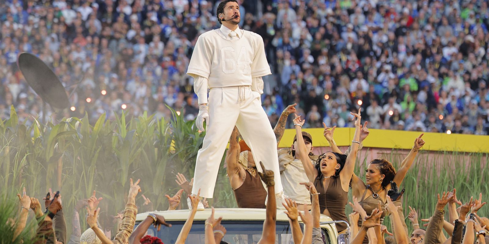 O Super Bowl, final do campeonato de futebol americano, que aconteceu na noite deste domingo (8), na cidade de Santa Clara (Califórnia), virou uma festa multicultural pró-imigrantes a favor de países latino-americanos e teve forte conteúdo anti-Trump. A partida entre o Seattle Seahawks e o New England Patriots acabou quase sendo um detalhe no meio de todo o evento. A escolha do cantor porto-riquenho Bad Bunny, que faz muito sucesso no mundo todo atualmente, anunciado há alguns meses, desagradou o presidente Donald Trump, que se manifestou contrário à presença do artista no Super Bowl. A apresentação de Bunny foi marcada pelo orgulho latino-americano e pelo apoio aos imigrantes que vivem nos Estados Unidos. Mas o tom crítico à política anti-imigração do atual governo norte-americano começou cedo. Antes do início da partida, a banda Green Day, abertamente anti-trump, se apresentou e tocou alguns de seus maiores hits, incluindo American Idiot. O vocalista Billie Joel Armstrong não citou nominalmente o presidente americano, como já fez em shows recentes, mas a presença do grupo punk no evento também pode ser considerado um recado a Trump.