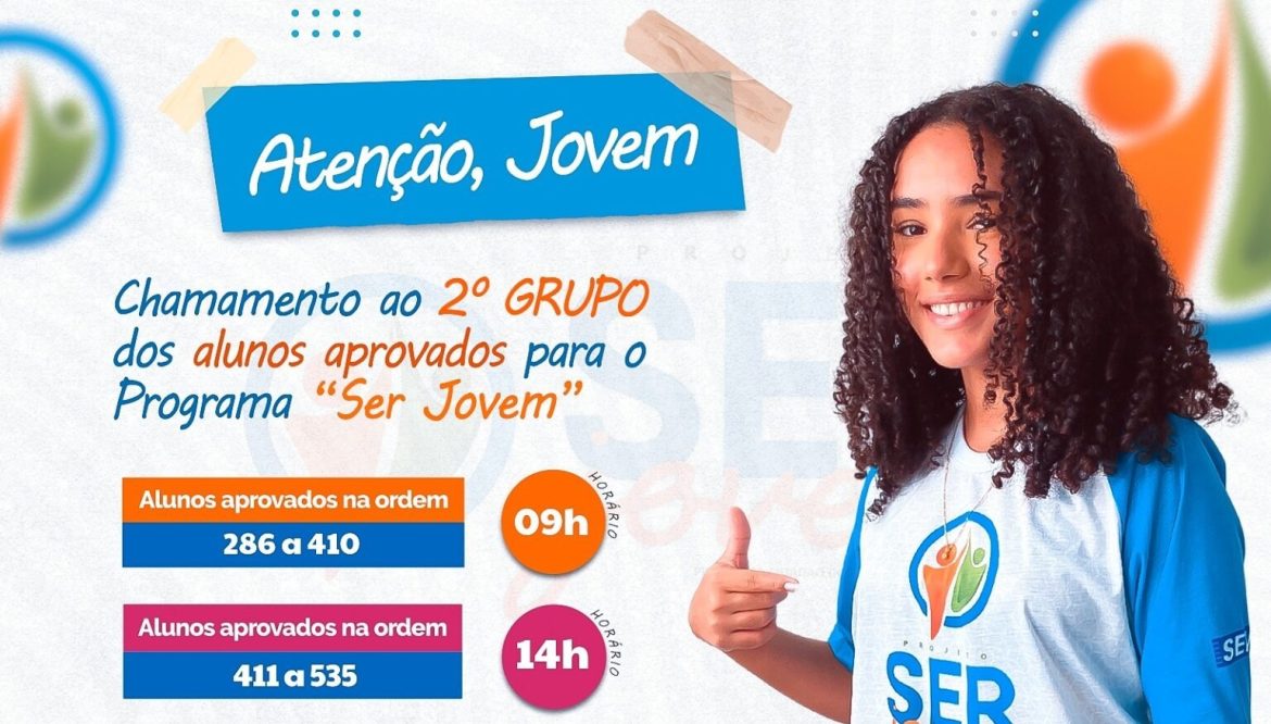 Conforme estabelecido pela Lei Municipal nº 573/2019, de 15 de abril de 2019, e pelo Decreto Municipal nº 1.803/2022, de 17 de agosto de 2022, a convocação se dá nos termos do Edital 01/2022, que regulamenta o programa. Neste segundo grupo, estão sendo convocados 250 alunos aprovados para assumir como titulares do PMCF – Projeto Ser Jovem.